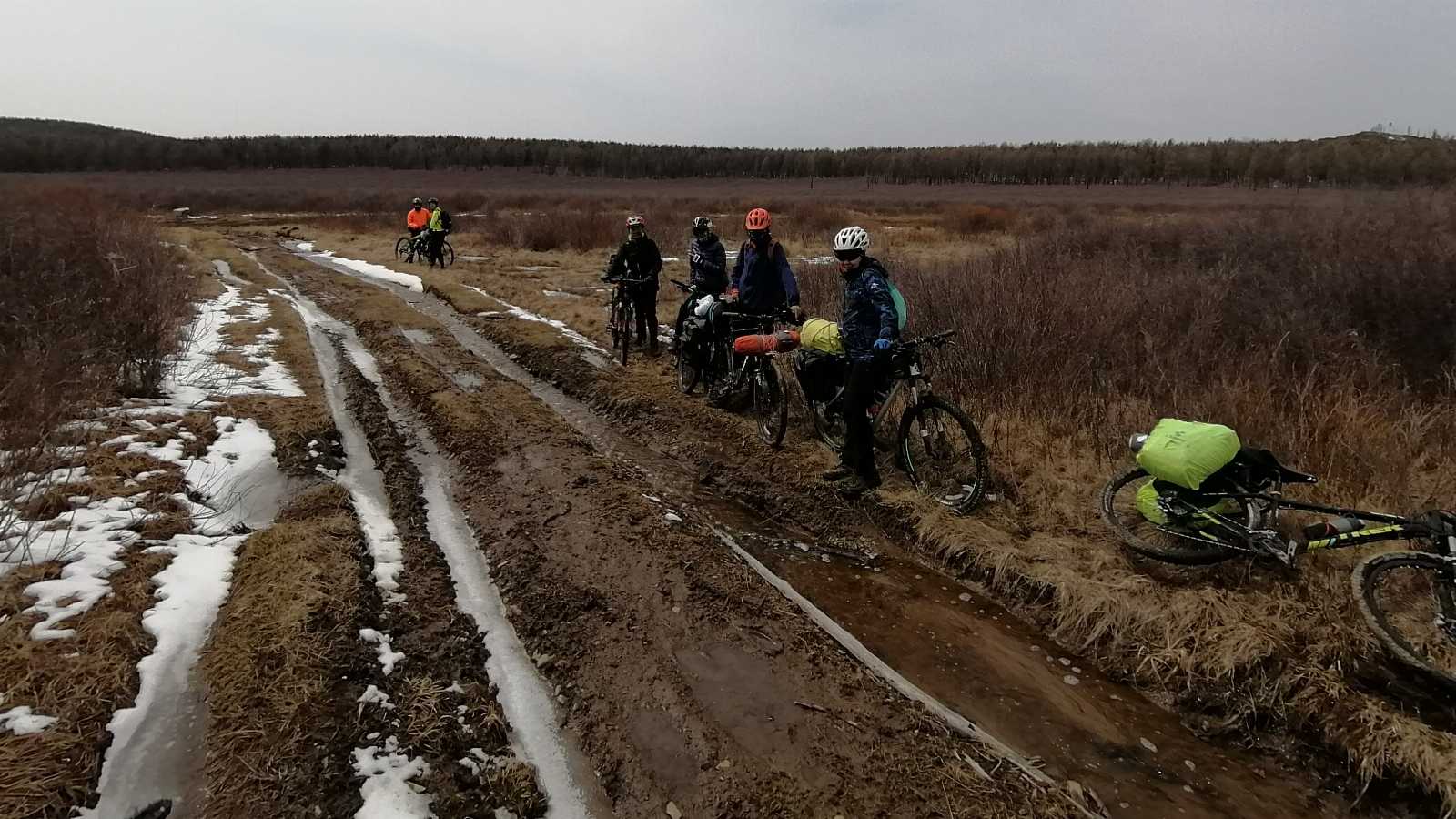 Солигдмол үүлтэй барсайсан өдөр болсон санагдана. Сэлбийн эх хүрээд нөгөө шавар, ус руугаа орлоо доо. Жийх боломжгүй, түрж буй дугуйны мөрөөр шавар наалдан халтартуулна. Эндээс биднийг гаргаж өгөөд, хоёр гишүүн буцлаа. Духын давааны үндсэн зам руу салахын өмнө үдийн хоолоо хийж идэв. Давааны замын ховилоор ус гэдэг горхи шиг л хоржигноно. Ийм нөхцөлд ачаатай дугуйтай жийх боломжгүй байдаг тул шууд түрээд явган аялал хийж эхлэв. Манайхан баг (2 бүсгүй, 4 ээрэгтэй) харин ч шазууртай өгслөө. Замдаа нэг татаад газрын зураг дээр харж байсан салаа замаар салав.