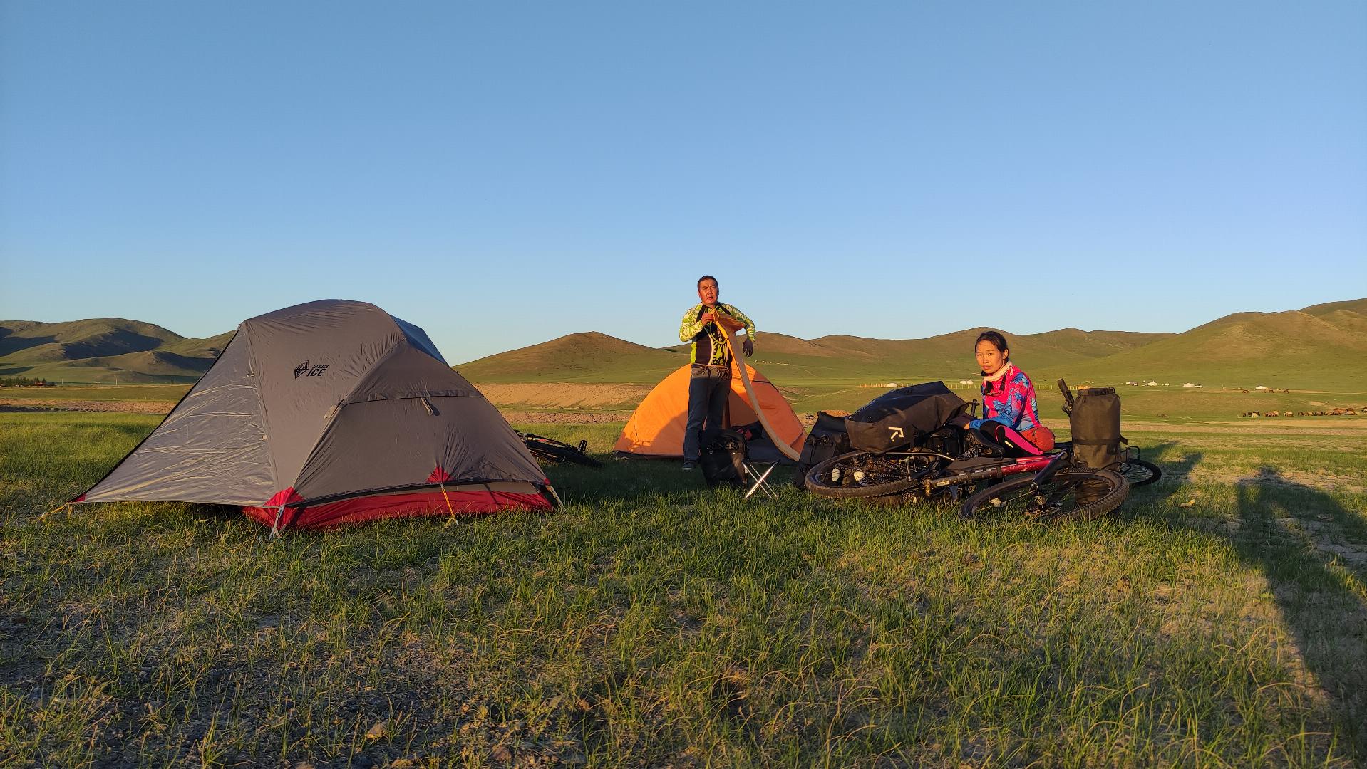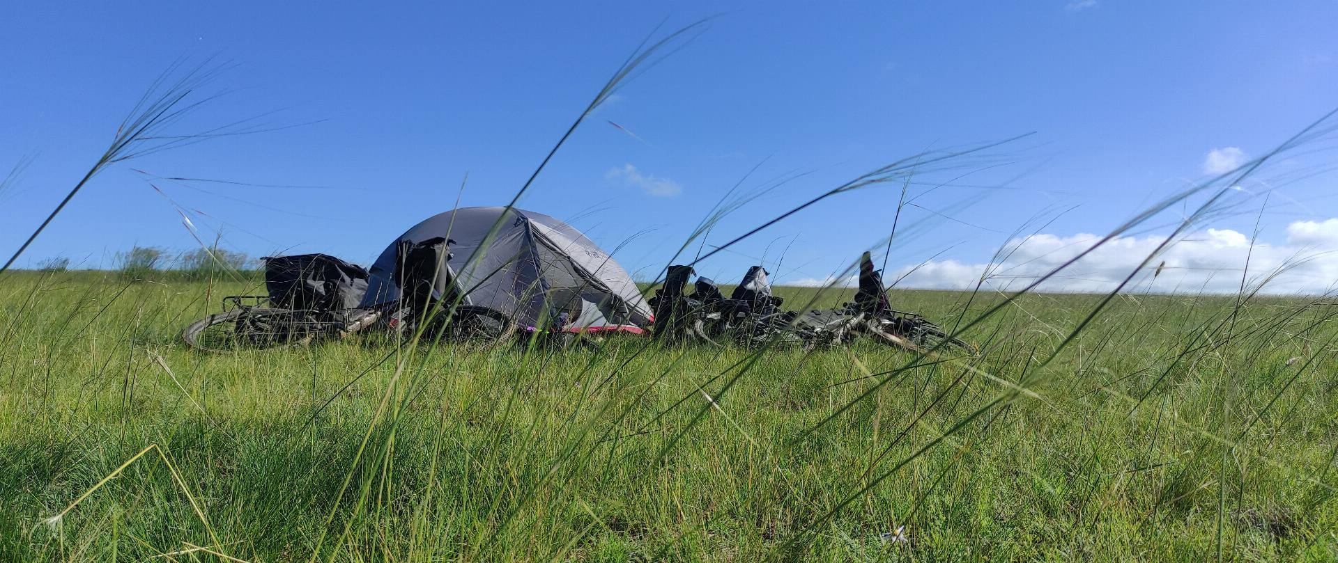 Зураг 17. Аяллын сүүлийн өдрийн өглөө ба манай майхан болон унадаг дугуйнууд, VIII/5 08:40