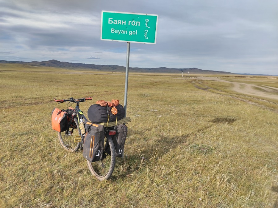Хажууд Алтан уул хэмээх дагшин хайрхан жанжин малгай мэт содон харагдана. Хэдэн хар нохой давхиад ирлээ, араас нь мотоциклтой залуу шилбүүр барин довтолгон ирж ноходыг зад хөөлөө. Та гэрт орж цай уу гэж уриад, зам дээр дугуйгаа орхин мотоциклд сундалдан тэднийд очив. Та замаа өнгөрөөд явж байна гэж хэлэхүй газрын зургаа хартал тийм болж таарав. Хурх нутгийн Бат Эрдэнэ залуутай ингэж танилцаж билээ. Буцаж уруудан голоо даган жийсээр Шар талын зах руу орж үр тарианы бригадын тарианы агуулах холоос харагдана.