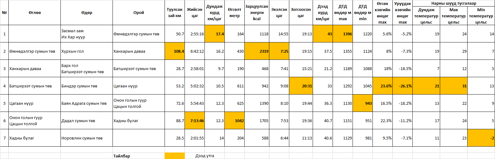 Эндээс Норовлин сумын төв 24 км зайтай. Энэ өдөр 89 км зам туулав. Дундаж хурд 12.2 км/цаг. Өгсөлт 1042м байв. Аргагүй дээ, алсын өгсүүр ихтэй зам, ёстой хоолны хүчээр л замаа туулсан даа.