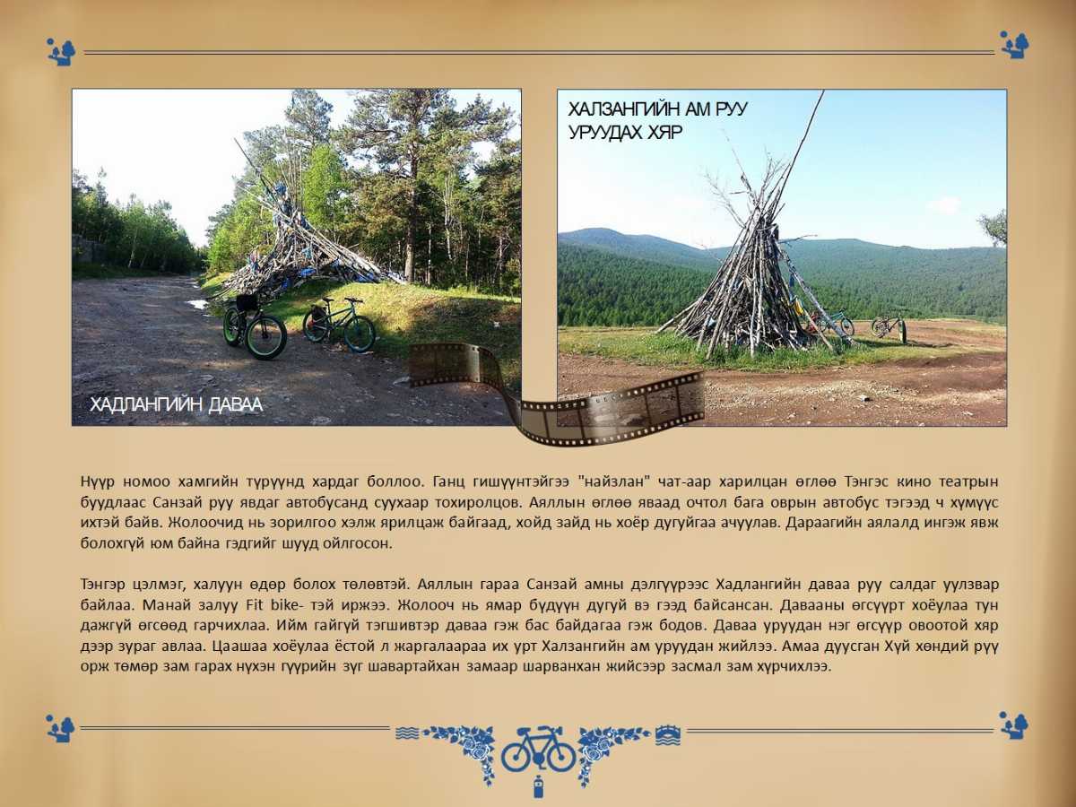 Тэнгэр цэлмэг, халуун өдөр болох төлөвтэй. Аяллын гараа Санзай амны дэлгүүрээс Хадлангийн даваа руу салдаг уулзвар байлаа. Манай залуу Fit bike- тэй иржээ. Жолооч нь ямар бүдүүн дугуй вэ гээд байсансан. Давааны өгсүүрт тун дажгүй надад ойрхон өгсөөд гарчихлаа.