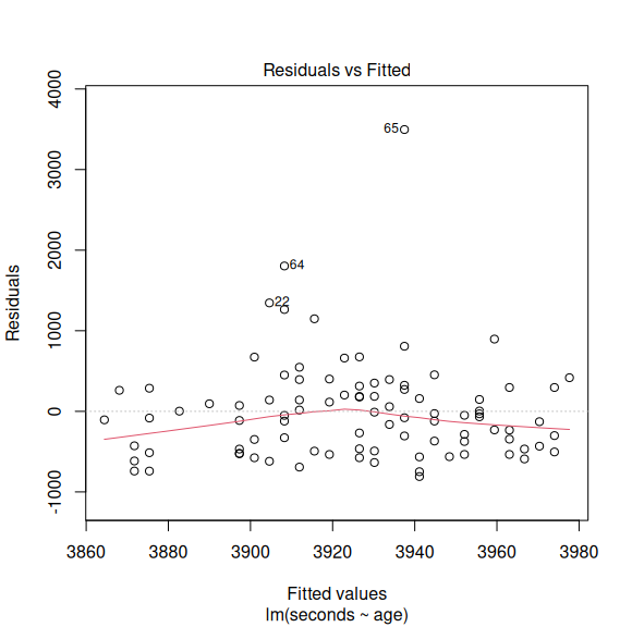 lm(formula = seconds_bc ~ age + I(age^2), data = race)