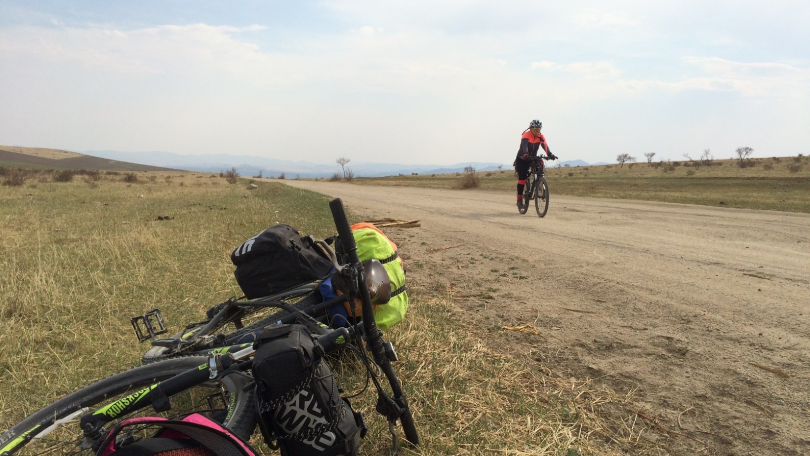 Зураг 13. Сэлэнгэ аймаг. Ерөө сум. Харниковын давааны замдБугантаас гарахын өмнө дүү маань Сүхбаатар хот хүртэл нэг өдөрт жийчих юмсан гээд надад хэлж байсан. Би тоймтой хариу хэлэлгүй дүйвүүлээд өнгөрч билээ. Харин одоо дүүгийнхээ биеийн бэлтгэл, дугуй унах мундаг чадварыг харсан болохоор шууд СБ хот руу жийхээр шийдэв. Ерөө сумаас гарч төмөр замын гарам нэвтрэн Хүдэр чиглэлийн засмал замд орлоо. Өгсөж уруудан салхитай байлдан жийсээр 20.40 цагт Сэлэнгэ чиглэлийн төв засмалтай нийлэв. Хоол идэж нэг цаг амраад гэрлээ асаан СБ хотын зүг гарав. Ц.Наранхүү андын өгсөн гэрэл ёстой л аминд оров. Бид хоёр дундаа ганц гэрэлтэй Арангатын даваа өгсөж уруудав.