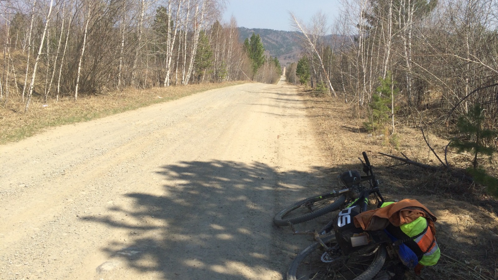 Зураг 11. Аяллын II дахь шат Бугант тосгоноос эхлэв. Аяллын анд дүүтэй болов.Аяллын замын эхний даваа эхэллээ. Эмээлийн бүүрэг мэт ойрхон орших даваануудыг нутгийнхан Хоёр даваа гэж нэрлэдэг. Эхний даваа даваж уруудан ой модон дундуур уулын бэл эмжих тахир замаар дараагийн даваа руу өгслөө. Дүү маань маш сайн дугуй унадаг гэдгийг мэдлээ, цааш аялах итгэл ч төрлөө. Энэ даваа нь Булгийн даваа гэдэг нэртэйг замын мэдээлэх самбараас олж мэдэв.