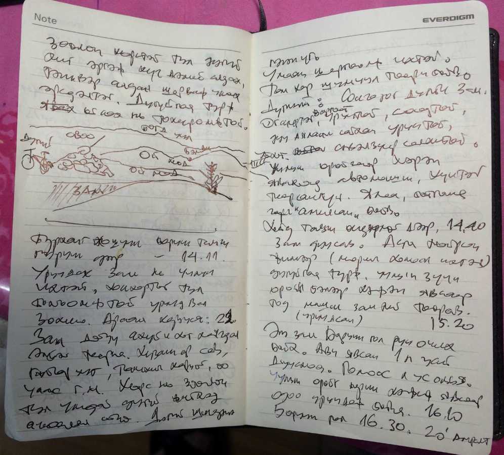 Даваан дээр гарчихлаа. УБ хот, Туул голын хөндий, Богд уул тэр чигээрээ алган дээр мэт харагдана. Энэ замаар оюутан ахуй цагтаа хэдэнтээ явж байгаад, Химийн ам гэдэгээр шууд Бурхант хошуу руу буудгийг мэдэж байсан. Тэр зүг замгүй учраас уулын орой, хяр дамжсан автомашины шороон замыг сонгон явлаа. Хэд хэдэн хяр руу өгсөж, багахан уруудаад дахиад л өгсөнө. Зүүн талаас хөндлөн зам ороод баруун тийш уруудаад явчихлаа. Зам дуусаагүй тул явсаар л байв. Унадаг дугуй жийх боломжгүй, олон жилийн хар модны шилмүүсэнд дарагдсан зам пампагнаад жийх боломжгүй шигдээд байсан. Тэгээд ч жийх тамир хүч сорогдсон мэт санагдаад, алхаад баймаар байлаа. Ер нь их тамирдсан, сүүлдээ хөлс урсахаа болив.