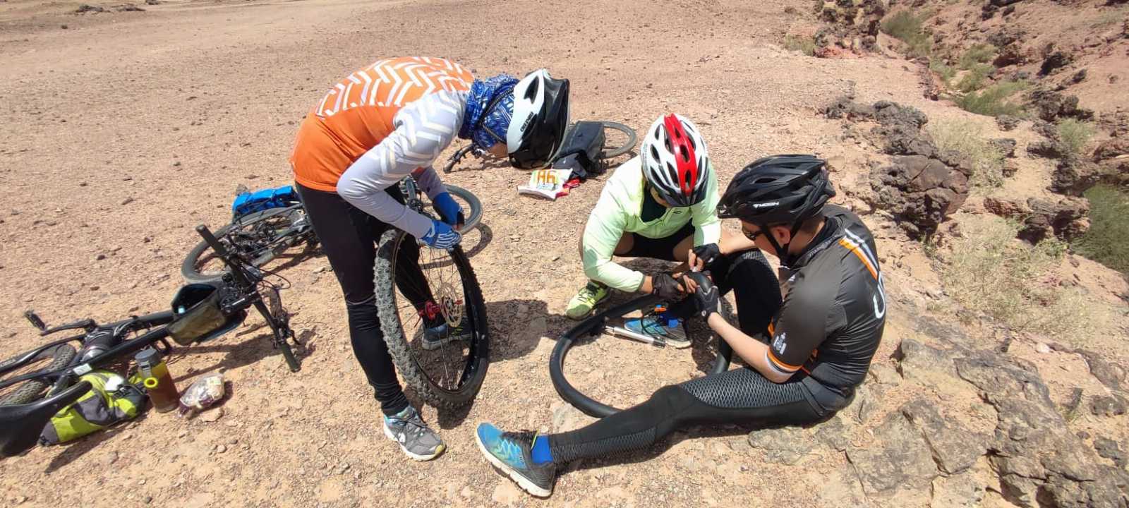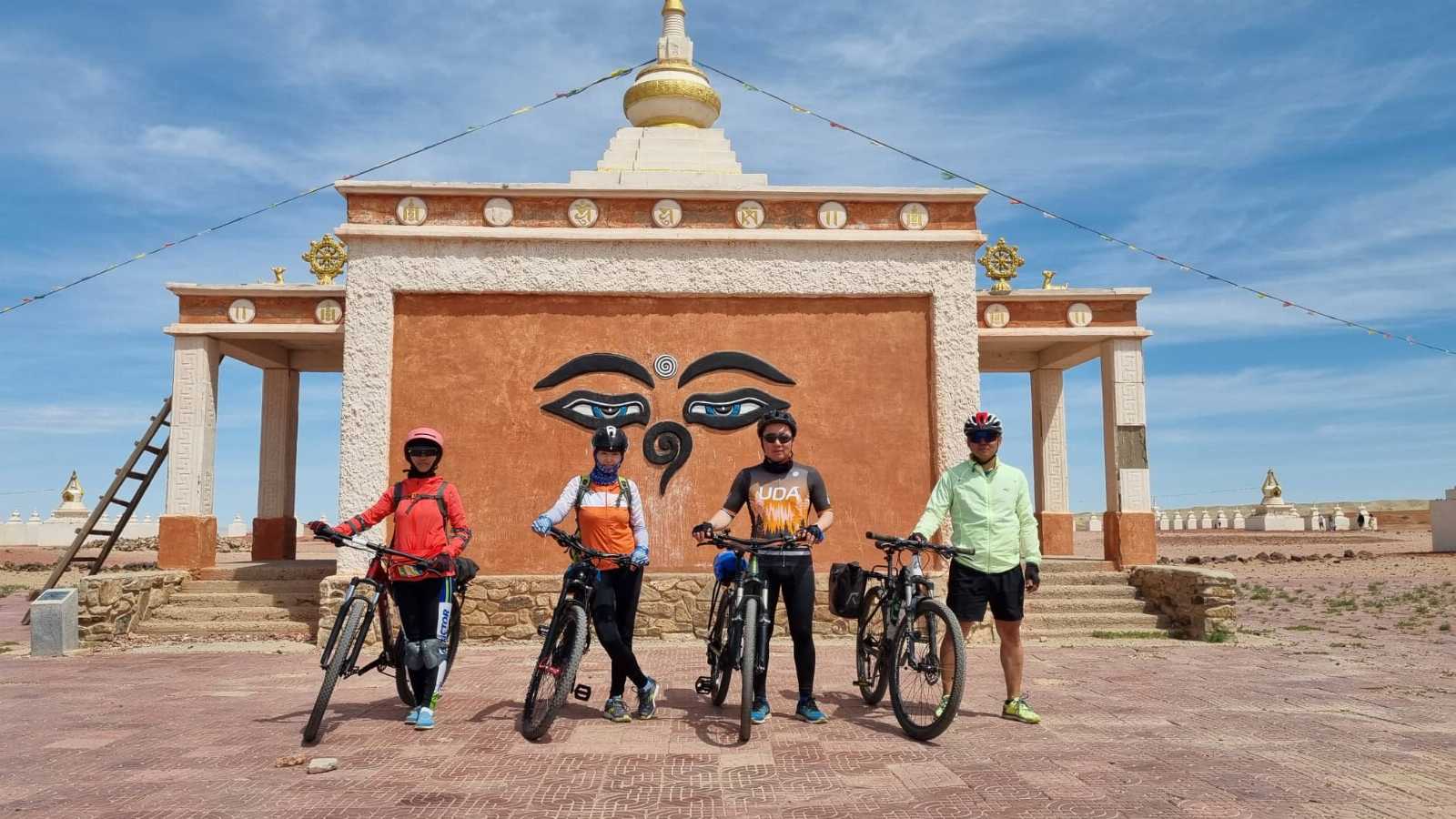За ингээд аймгийн төвөөс нэг мөсөн гарсныг илтгэх мэт төмөр замын гарам өнгөрөв. Яг тэр үед ямар азаар нэг ч гэсэн дэлгүүр таарваа гэж дотроо баярлан жийлээ. Аан тийм өглөө галт тэрэгнээс буухаас аваад л цаг агаар нэг л таатай сэвэлзүүр салхи бид дөрөвт зориулж үлээх мэт зүүн хойноос чиглэж байсан аятайхан мэдрэмжтэй байв. Замын зүүн гар талд цайвар зүсмийн ганц тэмээ идээшлэн бид дөрвийг хмм... өдөр болгон холхидог хэдэн хүмүүсийн нэг байна гэсэн аятай хэвэн зогсох ажээ. Замын нөхцөл хэвийн сайхан боловч үе үе эвдрэл таарах нь элбэг. Гэхдээ огцом ухагдсан хагархай байхгүй байгаа нь сайн. Салхины ачаар өгсүүр үед ч хүч бага зарцуулан төвөггүй жийсээр талын нэгэн жаахан толгой дээр гарч ирэхэд багийн гишүүн Жавхлантөгс хүлээж байлаа. Ингээд хоёр эмэгтэй гишүүнээ ирсэний дараа хамтдаа хөдөлцгөөв. Галт тэргэнд байхын Жавхаа: "Хурдхан дугуйгаа аваад унах юмсан" гэж яараад байсныг хэлэх үү дугуйндаа мордовуу үгүй юу л годолзоод алга болсон юм. Нөгөө хоёрынхоо ард цоож хийн жийж байтал нэг зүйл анзаарав. Багийн гишүүн Мөнгөнсүх маань жийхдээ толгойгоо хоёр тийш хөдөлгөж жийдэг юм байна. Жаахан хурдтай жийх үедээ бүр ч илүү хөдөлгөж байсан шүү.