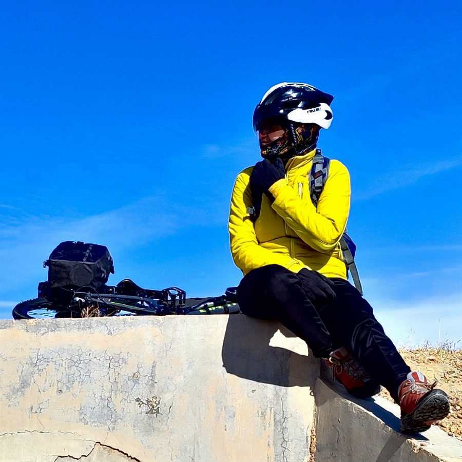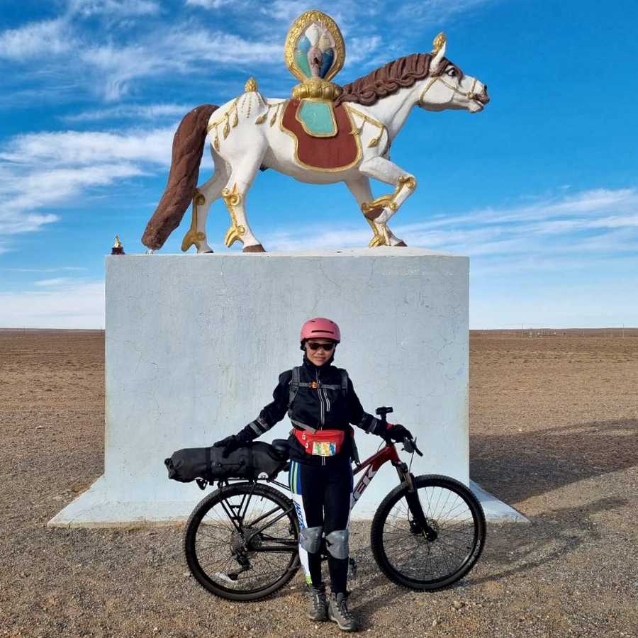 Зогсоход бидний араас салхи таараад дэм өгч байгааг мэдрэв. Админ цаг агаарын мэдээнээс салхины байдлыг харж аяллын чигийг тодорхойлсон гээд байсан нь энэ байж гэж бодогдоно. Ингэж хэсэг амсхийгээд буцаад жийх хооронд эхний хэд бас л холоо явчихаж. Эрдэнэ сумын бараа тэдний цаана нь харагдсаар л... Жийгээд байхад л газар хорогдоод байгаа нь үл мэдэгдэх говь, талаа гэж. Шороон замаар овоо хүчилж жийсээр Эрдэнэ сумын хаяанд байх морины хөшөөн дээр ирэхэд 14:45 болж байв. Аяллын зам ерөнхийдөө дууссан гэсэн шиг хамаг бие хөшөөд, хөдлөхөд хэцүү болж байв. Манайхны зарим нэг нь үүнийг тохуурхан “101 км”-ээр кодлогдсон юм уу, дараа 130 км-ын аялал зарлавал 101 км яваад л зогсох уу гэсэн маягийн юм асууна, хэхэ. Гэхдээ л ойрд жийгээгүй миний хувьд бол аяллын үеэр нуруу болон бусад хэсгээр өвдөөгүй, дугуйнд техникийн асуудал гараагүй ирсэнд баярлана.