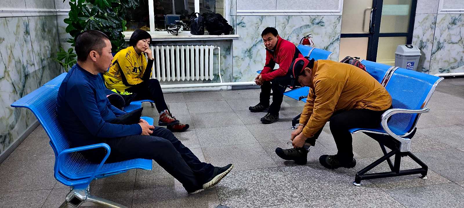 Манай админы үг ч дандаа ардаа “дагуултай” байдгийг нижгээд аялалд хамт явж байгаагийн хувьд гадарлаастай. Сайхан цайлцгааж аваад 4:20д вагоноосоо бууцгааж, дугуйгаа тээшний вагоноос аваад вокзал дотор орж аялал эхлэх 8 цагаа хүлээн сууцгаана.