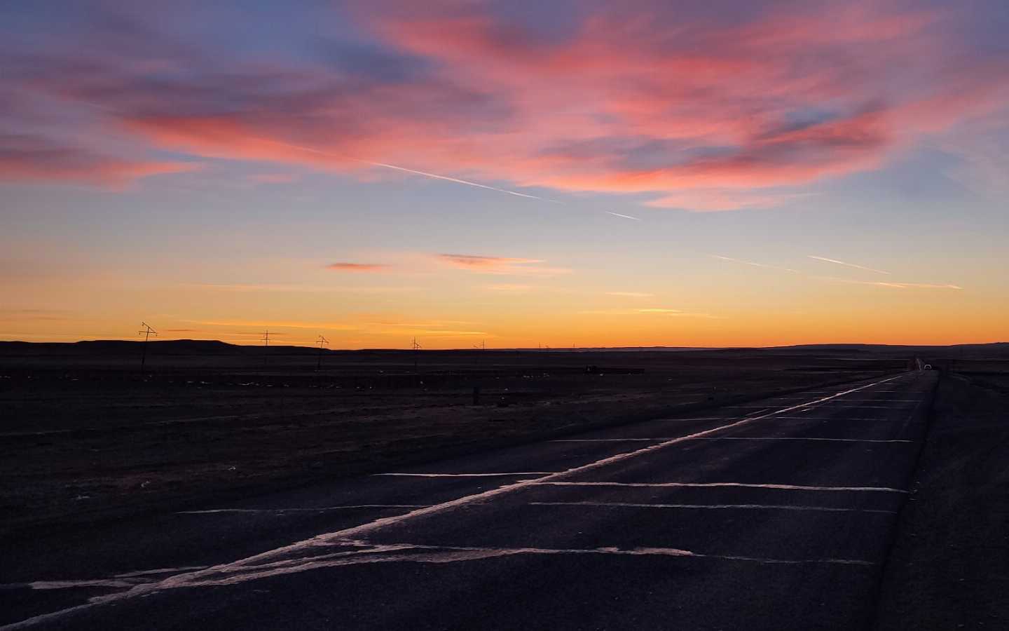 Үүр гэгээрч байгаа тул бид заавал 8 цагийг хүлээлгүйгээр замдаа гарахаар болов. Ингээд бидний жийлт 11 сарын 5-ны 6:30-д албан ёсоор эхэллээ. Тэнгэр цэв цэлмэг, тэнгэрийн хаяа ягаараад л, өнгөнүүд нь хоорондоо гайхалтай сайхан уусаж харагдана. Миний хувьд нар жаргах үеийн тэнгэрийн хаяаг янз бүрээр л харж гоё гэж боддог байснаас нар мандах үеийн хаяаг ийм гоёор харж байсангүй. Болдогсон бол цаг хугацааг яг тэр чигт нь зогсоогоод тэр л гоё тэнгэрийн хаяаг хараад л байгаад баймаар тийм гоё. Нар мандах хүртэл бараг замаа ч харахгүйгээр, тэр л тэнгэрийн хаяанд нүд унаган жийсээр … Тэр тэнгэрийн хаяаны өнгө хэзээ ч сэтгэлээс мартагдахааргүй, үгээр хэлэхийн аргагүй үнэхээр үзэсгэлэнтэй.