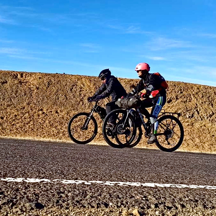 Нар ч мандаж бид дугуйн гэрлүүдээ унтраагаад Дорноговийн сайхан зассан замаар өөр өөрийн темпээр жийсээр байв. Байсхийгээд хажуугаар өнгөрөх том том ачааны машинууд нэг л түгшүүртэй. Хойноос гүйцэж ирэх тэр машинууд сигналдах нь чихээ яах гэж ухаж гарав даа гэж бараг харамсахаар чанга юм. Багийн сүүл хавьд явж байгаад харахад зарим нэг нь урд байгаа хэдийг маань шахаад л, тойрч гарахдаа дугуйнаасаа хар утаа гаргаад л асар хурдттайгаар гүйцэж түрүүлж байгаа харагдана. “Аажуу явбал аяндаа хүрнэ дээ” гэж тэр жолоочид хэлмээр. Гэхдээ л бид яаж ийгээд тэдэнтэй зохицоод зөрөөд л байлаа. Урдаас ирэх том машин ирэх болгонд нь доошоо тонгойно. Тэгэхгүй бол том машин явж өнгөрөх үеийн салхи маш хүчтэй биднийг цохино. Анх энэ зун Хамарын хийд рүү дугуйтай аялж байхад аяллын арвин туршлагатай багийн эгч маань “Том машин ирж байна, суугаарай” гэж хэлэхэд “Айн” гэж хэлээд, ойлгож амжилгүй тэр машины салхинд цохиулснаар учрыг нь мэдсэн юм. Одоо бол аюулгүй байдлын үүднээс том машин зөрөхөд байнга бөхөлзөж, тонголзоостой жийж явдаг болсон.