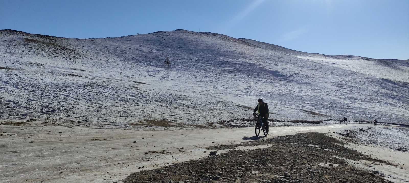 Дүнжингаравын урд байх GS25-аас хөдөлсөн бид шууд л Дүнжингаравын дугуйн зам руу орсон. Тус замаар групп өнгөрөгч 1-р сарын Сэлэнгийн аяллын өмнө хэд хэд жийхэд битүү цастай байсан нь одоо бараг хайлж алга болж буй нь шууд мэдрэгдэв. Ингээд дугуйтай явахад барагдаж өгдөггүй өнөөх замаар жийсээр Амгалангийн уулзвар, Баянзүрхийн товчоо, Ургах Наран хорооллоор дайрч Баянзүрх хайрханы өвөр бэлээс өгсөж эхэллээ. Манайхны зарим нь аялал одоо л жинхэнээсээ эхэлж байна гэлцэнэ. Үнэхээр тийм юм. Үүнийг ч зөвтгөх мэт агаар, салхины эрчим шал өөр болчихов.