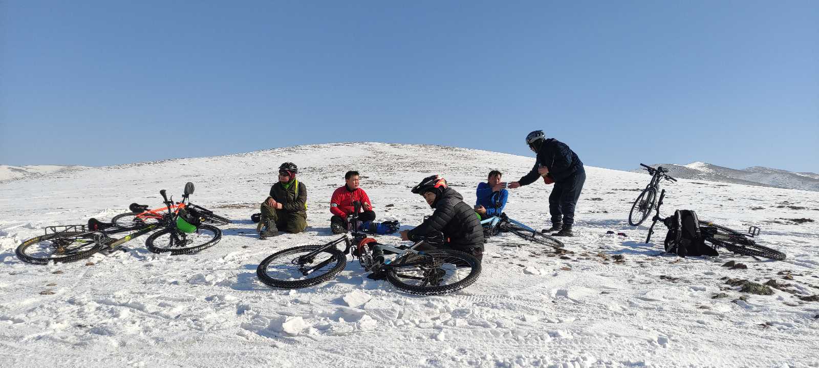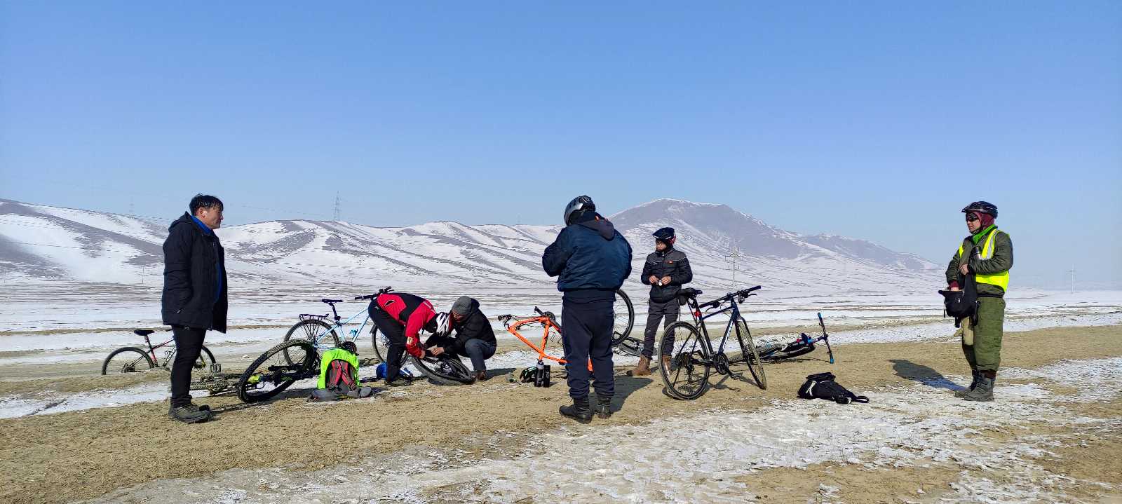 Цааш Сонгино хайрхан уулын баруун урд сугаар гарч, карьерын замаас зай аван цас шороо холилдсон хээрийн замаар Шар хөвийн дөрөлж рүү чиглэн жийлээ. Салхи үгүй болж пөнхийгээд өвлийн өнтэй өдрийг мэдрэн тааваараа манай баг өгсөж байлаа. Нэг гишүүний маань хойд дугуй хагарсан байсныг Жавхаа механик нам нөхлөө.
