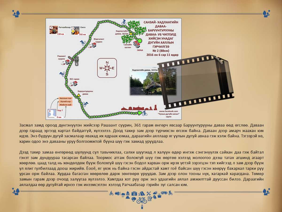 Эхний аяллаар УБ хотынхоо хоёр давааг унадаг дугуйгаар давчихсан болохоор их урам оров. Газрын зураг дээр зам харж байгаад огт даваж байгаагүй даваа сонголоо. Мөн аяллын зайг уртасгасан юм. Аялалд оролцсон гишүүдийн аяллын зайг тэмдэглэж статистик хөтлөхөөр шийдлээ. Уул давааны орой дээрхи овооны зураг авах нь сайхан санагдаж байв.