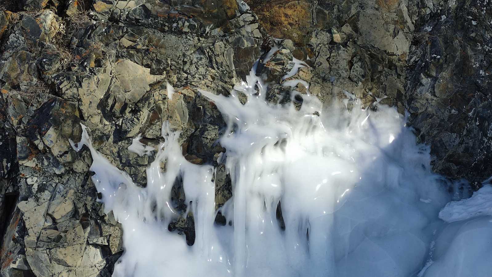 Зураг 5. Мөсний хагархай заагаар оргилон гараад хөлдсөн хөөстэй ус