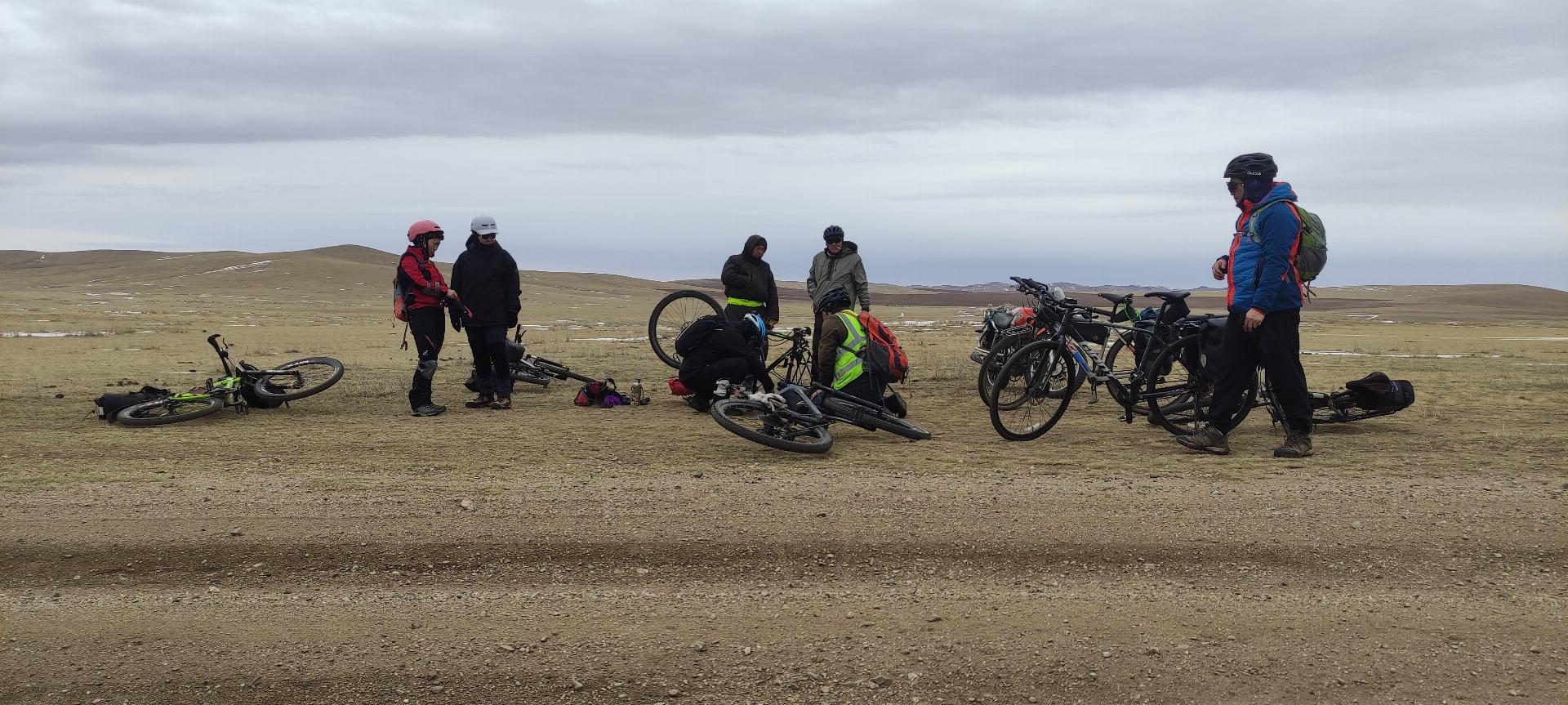 Багийн гишүүд зогсолтгүй урагшилсаар Цээл голын хөндий рүү орох үед ахиад дугуй хагарав. Салхины чиг өөрчлөгдөн араас туух маягтай боллоо. Хүйтний эрч ч сулрав. Одоо та нар хурдан яваарай гэсэн шиг байгаль хүртэл бидэнд тусалсан юм. Цээл сумын төвд 14.20 цагт ирлээ.
