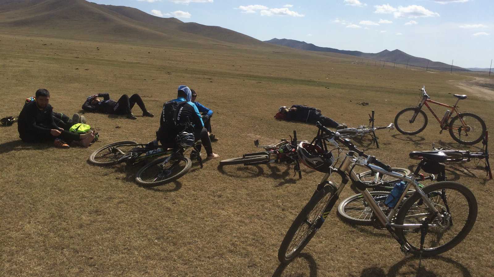 Зураг 1. Манай баг. Тахилтын давааТовлож байсан цагаасаа хоцорч аяллын зам сунайж байсан боловч бид жийсээр 13.20 цагт Тахилтын даваа, 17.30 цагт Гүнтийн даваа (Бүртгэлийн цэг 2), 18.20 цагт Жигжид, 19.50 цагт Шарга морьтын зүүн талын даваа дээр гарлаа.